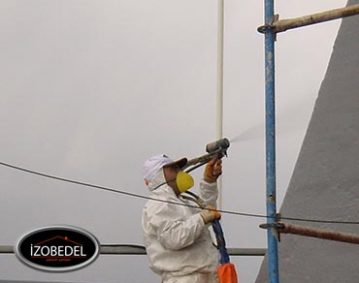 Sprey poliüretan köpük, yüksek basınçlı makine ekipmanı yardımıyla püskürtme uygulama yöntemiyle sıvı olarak yüzeye uygulanan, bir